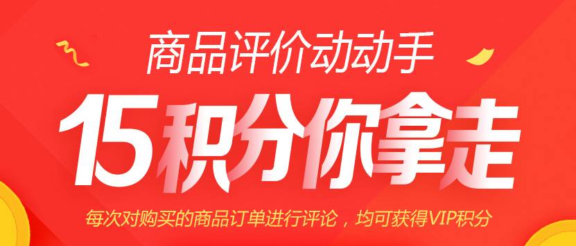 河姆渡新一季度VIP评级开始了,如果您的积分还未达标,我们为您提供商品评价拿积分活动,下单购买后对订单商品进行评论,均可获得15积分,评价越多,积分越多,享受的特权也越多。